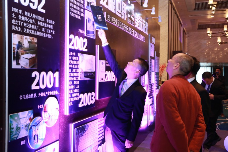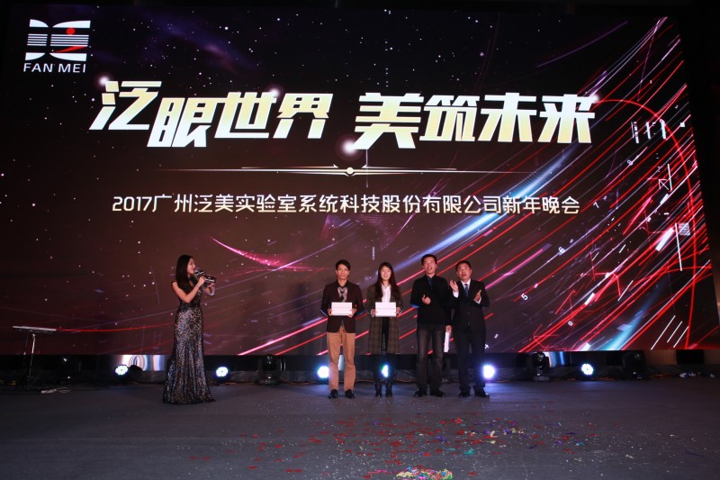 新三板掛牌新聞發布會圓滿成功后是茶歇時間,參會者繼續一邊觀看精心制作的泛美實驗歷史墻,一邊和新老朋友們開心暢談。晚上18:00整由震撼電光舞正式開啟2017泛美實驗新年晚會,首先由總經理魏志剛致辭,向所有朋友致以了最誠摯的節日問候和美好的祝愿,泛美實驗所有成績的取得凝聚著公司所有人的心血和汗水、智慧和力量。新的一年點燃新的希望,新的形勢賦予新的使命,新的起點力爭新的突破。