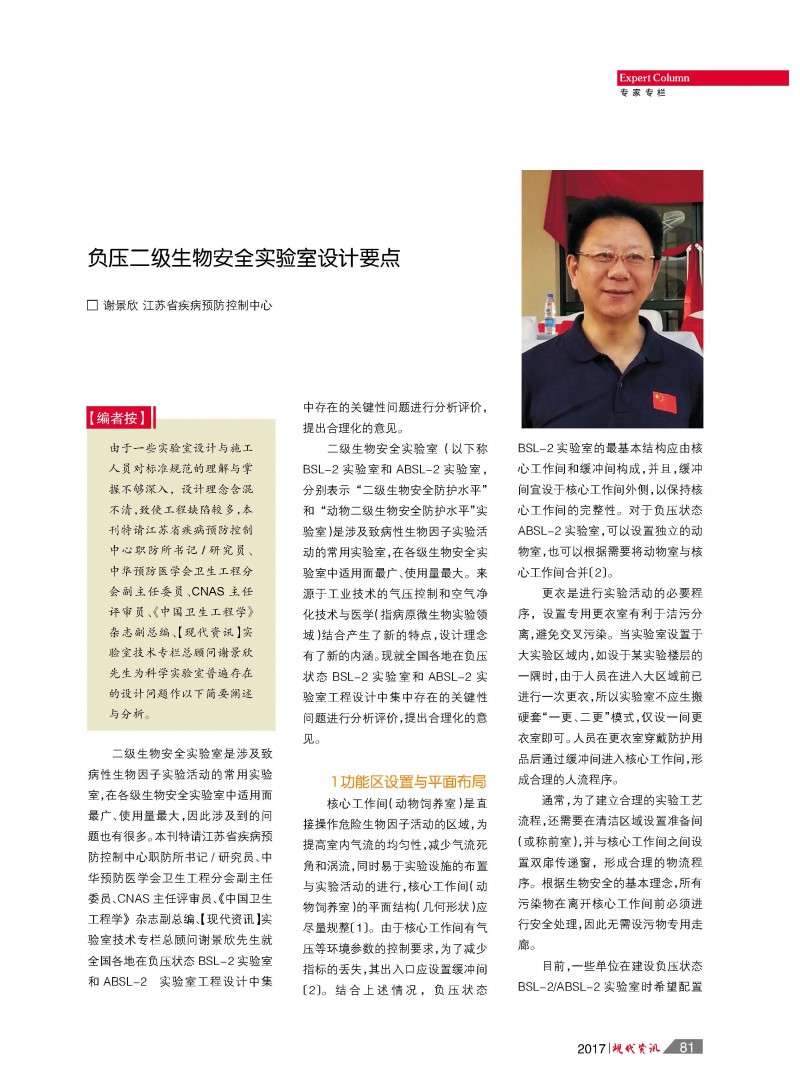 《負壓二級生物安全實驗室設計要點》