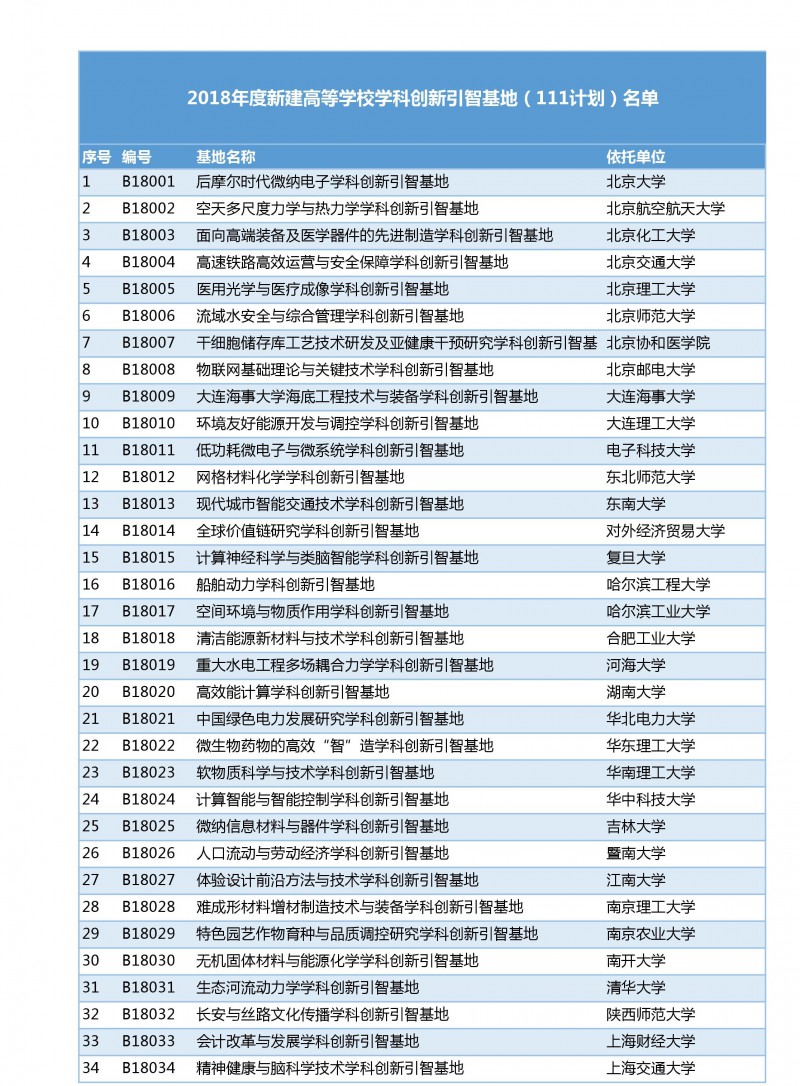 日前,國家外專局和教育部正式公布了2018年度新建高等學校學科創新引智計劃(即“111計劃”)立項名單,全國共有62所重點高校獲批。