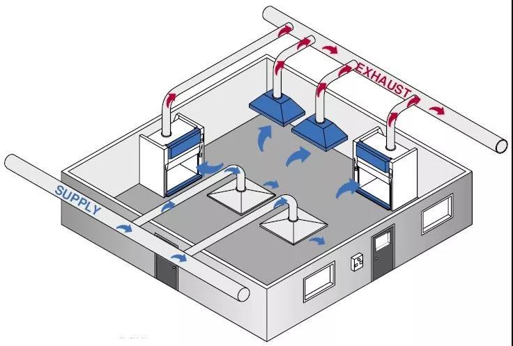 對(duì)于有些實(shí)驗(yàn)不能使用局部排風(fēng),或者局部排風(fēng)滿足不了要求時(shí),應(yīng)該采用全室通風(fēng)。