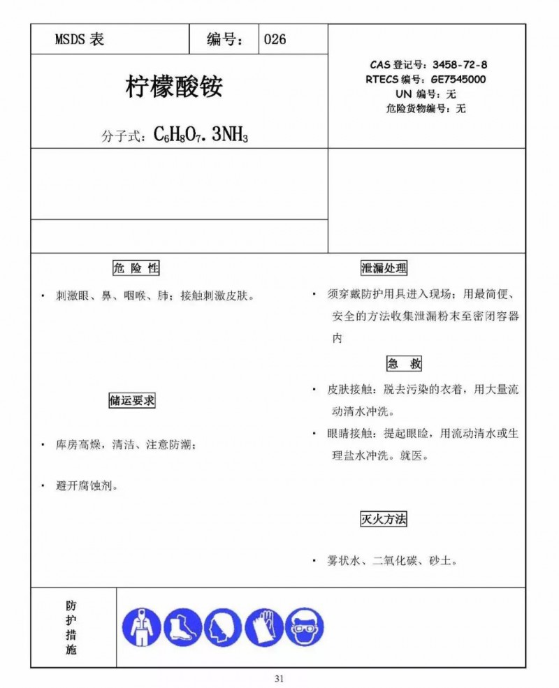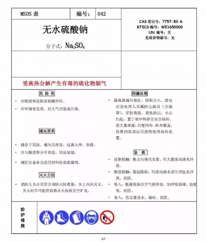 它提供化學品的理化參數、燃爆性能、對健康的危害、安全使用貯存、泄漏處置、急救措施以及有關的法律法規等十六項內容。