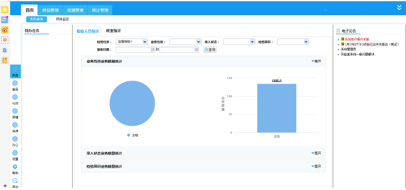 完成信息化建設總體規劃與設計,建設食品藥品檢驗業務系統。經過一年多的磨合、修改及完善,目前信息化系統已完成一期建設,具備以下功能: