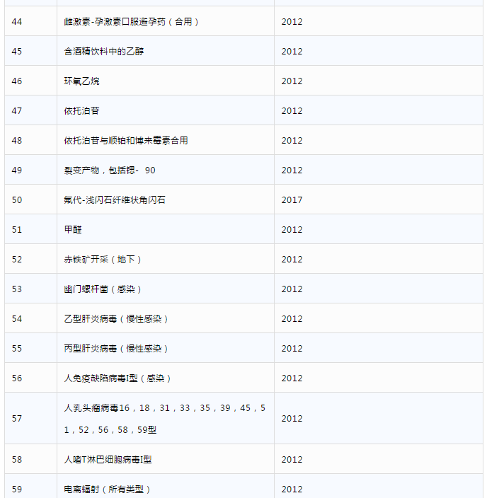 第一類致癌物清單