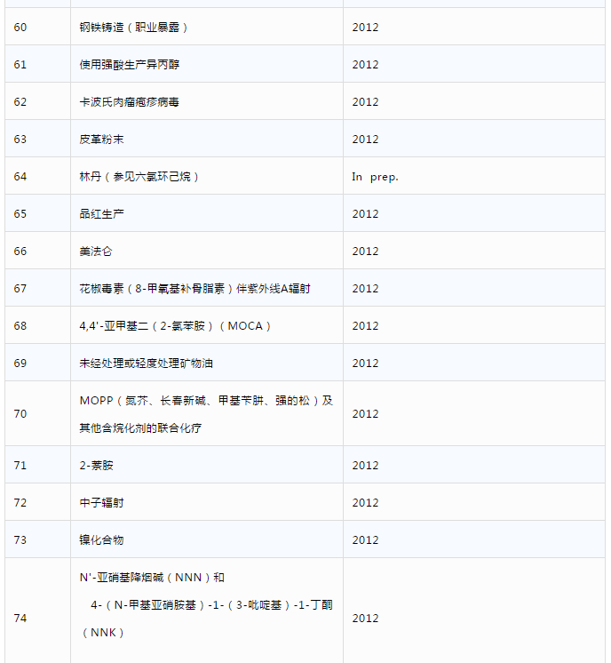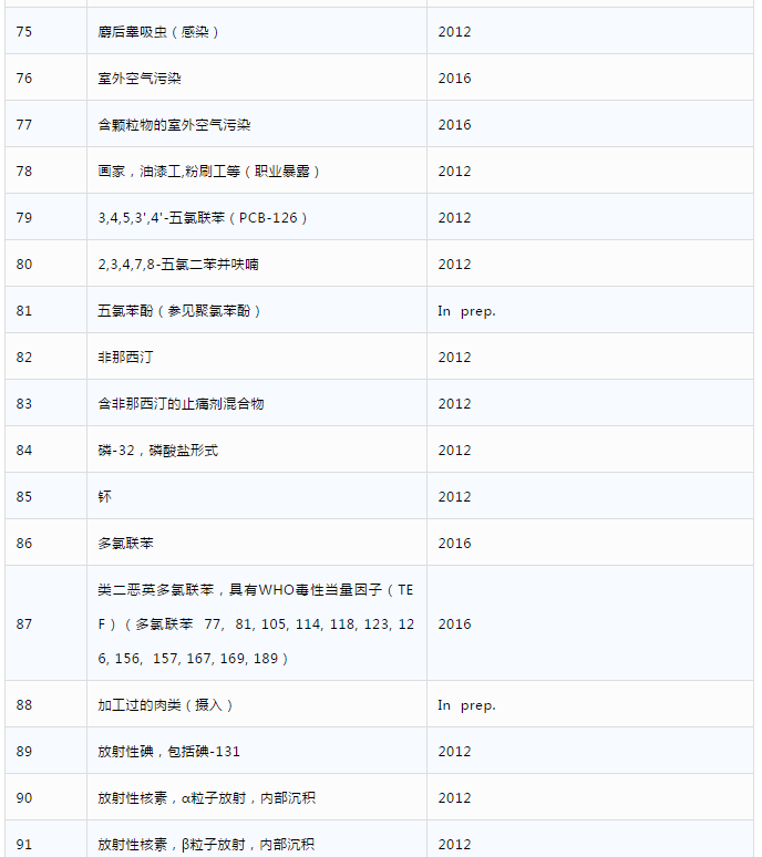 第一類致癌物,有「明確」的致癌作用,116種