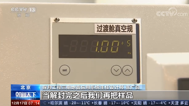 探月工程三期地面應用系統主任設計師 張廣良:面臨的最大的問題就是解封在月表真空環境下封裝的設備,這個難題是我們通過不斷的技術和驗證,最終設計了一套方案,在真空條件下獨立進行罐子的解封,在解封完之后我們再把樣品轉移到氮氣環境下進行存儲和處理。