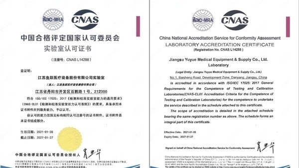 魚躍全球檢測中心成立以來,發(fā)展迅猛,成果顯著。相繼通過了多項國內(nèi)認可、國際互認的能力驗證,并于2020年獲得國際知名第三方認證公司UL的授權(quán)實驗室資質(zhì)。此次成功通過CNAS國家實驗室認可,代表其檢測能力、管理水平均達到新的高度。