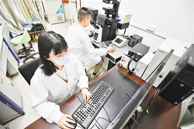 5月6日,西南大學蠶桑微生物顯微鏡室,科研人員正在用激光掃描共聚焦顯微鏡研究微孢子蟲。