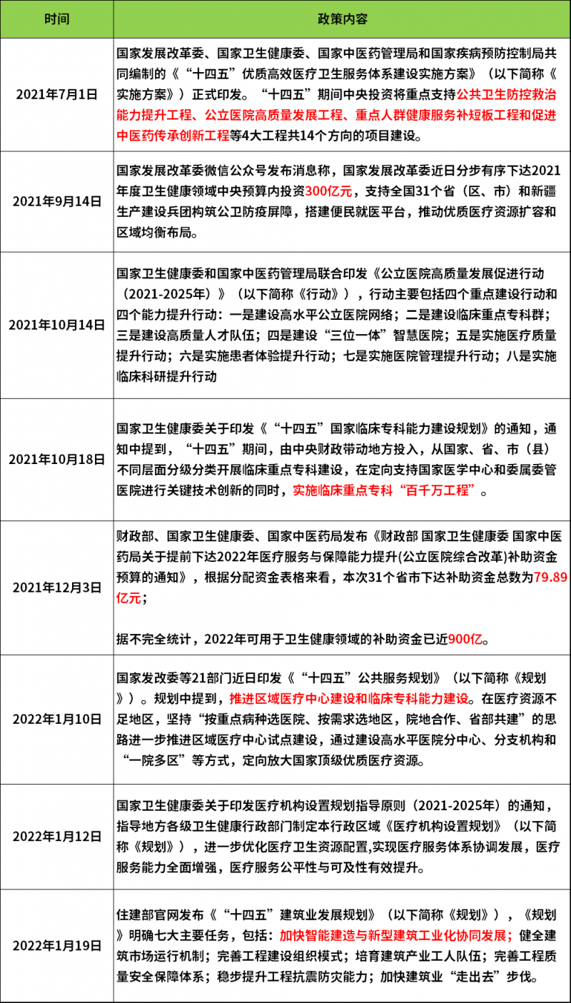 2021年7月-至今部分醫(yī)院建設(shè)相關(guān)政策