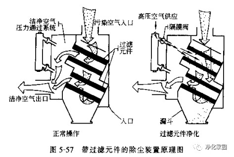 此類裝置都可以采取取拍打反吹或更換過濾器元件的方式,使除塵裝置可較長期的使用。對(duì)于某些含塵濃度很高的排風(fēng)系統(tǒng)根據(jù)工程具體情況有時(shí)尚需設(shè)置二級(jí)除塵裝置將大部分粉塵去除后再送入前述的布袋或過濾除塵裝置,這樣做才能滿足大氣排放標(biāo)準(zhǔn)的要求,從而穩(wěn)定、經(jīng)濟(jì)地運(yùn)行。