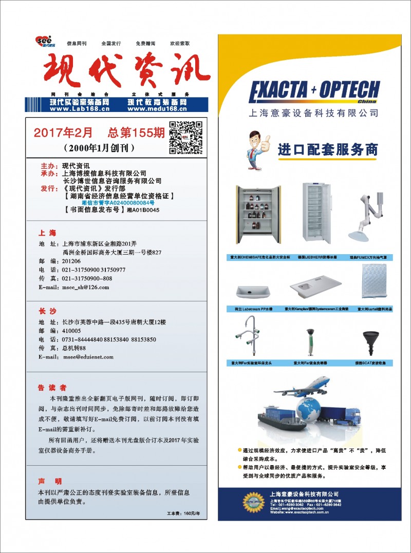 4、本刊管理人員從事實驗室產品銷售工作多年,對實驗室市場的理解和把握有一定的見解;